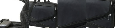 - adjustable padded shoulder strap with detachable cell phone pocket