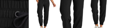 - Self-fabric elastic waistband and cuffs
